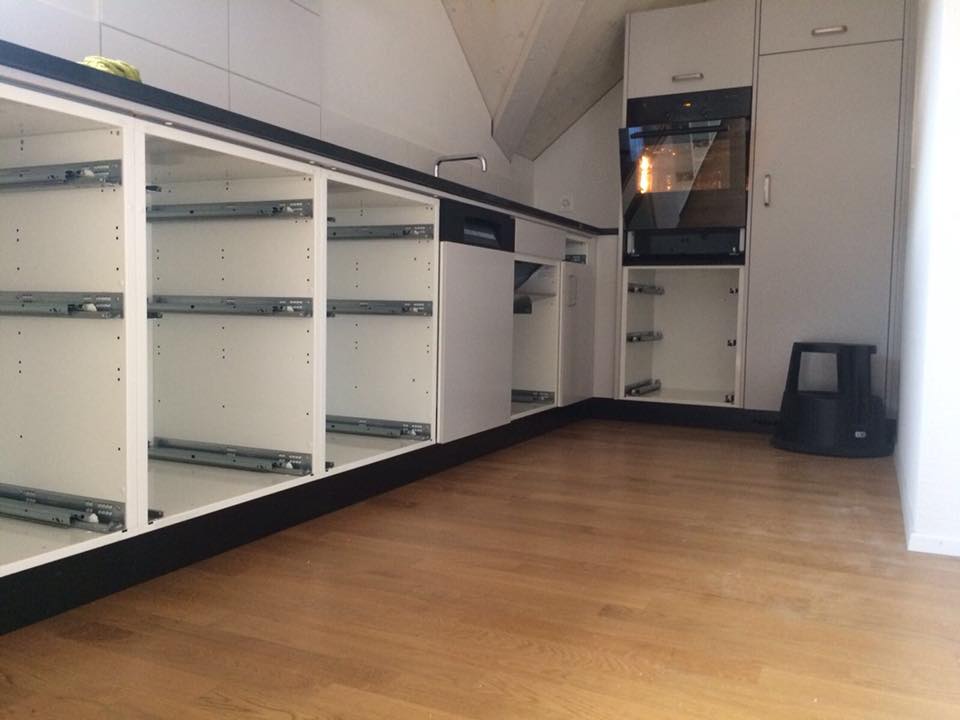 • Küchenschränke, Geschirrspüler, Herd und Kühlschrank